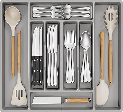 Extra-Large Capacity: This cutlery tray features ten compartments for cutlery, kitchen utensils, tools or gadgets. It effectively maximizes the storage space in your extra-wide kitchen drawers