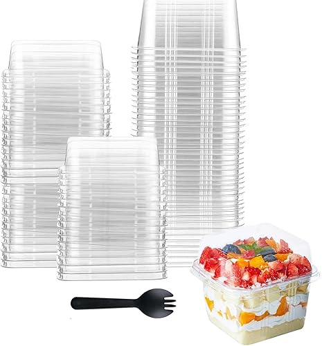 【Good Sealing】: The corners of the square dessert cups with a buckle design, close fitly, secure lids keep your food fresh from dust or flies and are stackable and convenient to take away.