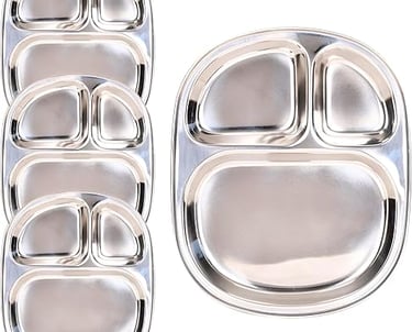 FOOD GRADE STEEL: These Plates are made from 100% food grade steel and are safe to use by all age groups. Perfect dinner trays for kids or even Adults to have balanced diets.